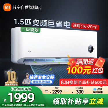 米家小米空调1.5匹挂机巨省电新一级能效变频冷暖卧室智能空调节能省电挂机35N1A1