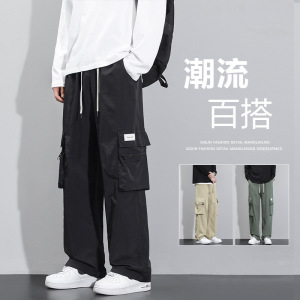 ins潮流裤子男华棉复合宽松大码休闲春秋直筒长裤运动裤