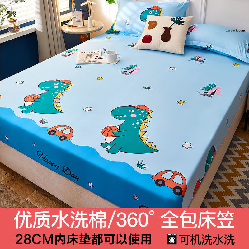 南极人床笠单件水洗棉床罩全包床套床垫保护罩席梦思防尘床单防滑 150*200cm+两只同款枕套 恐龙谷