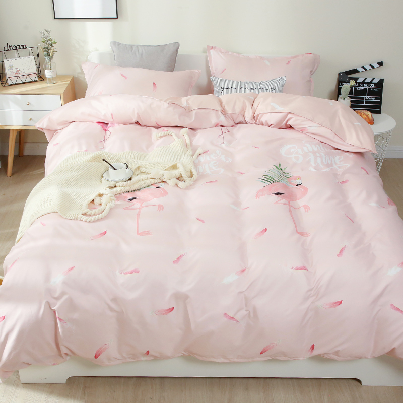被套被罩单件单人双人床学生宿舍1.52.0米2m1.8水洗棉褥子套_2 200X230cm【AB被套单件】 粉色羽毛