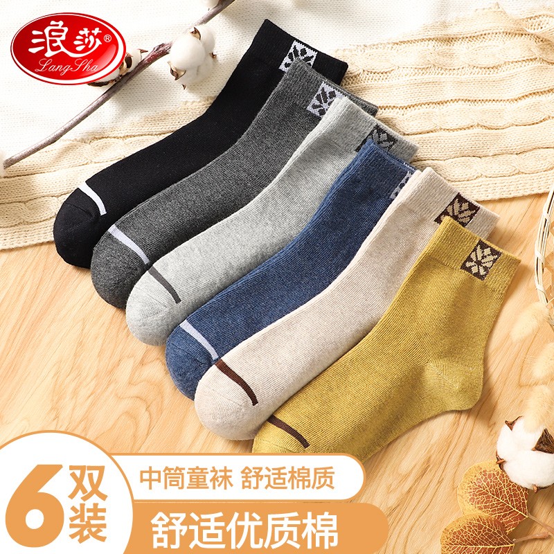 自营 浪莎儿童袜子男童秋冬中筒袜中大童男孩学生潮袜个性时尚青少年运动袜 经典纯色 21-26码 脚长16-18cm 建议3-5 27-30码脚长18-20cm建议5-7 经典纯色