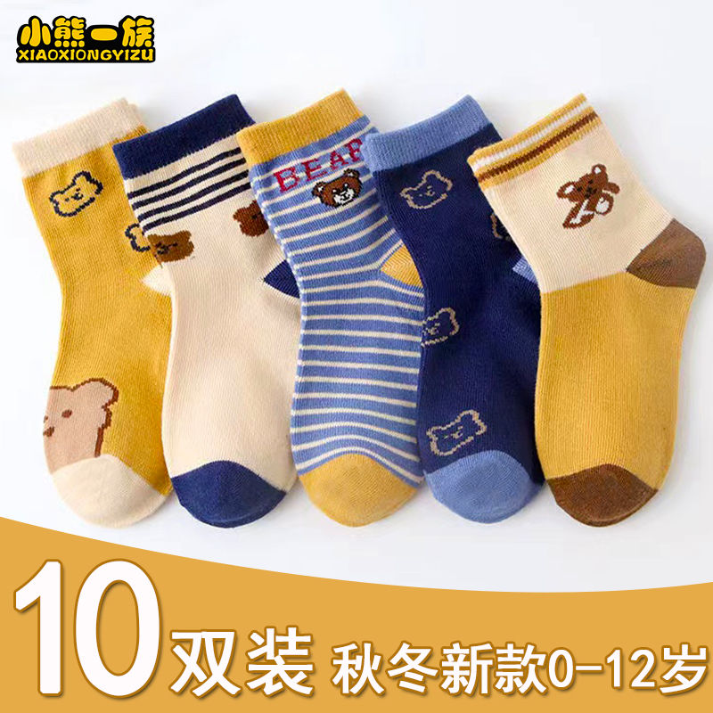儿童袜子男童女童秋冬季保暖中筒棉袜小孩婴儿袜_259 【L】建议6-8岁 【10双装】棕色小熊