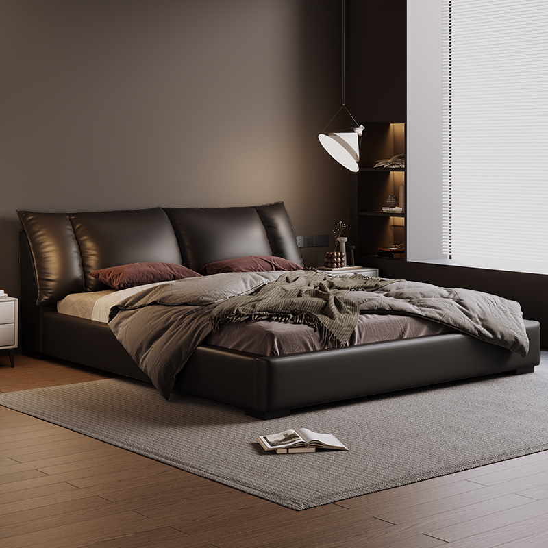 苏宁官方真皮床意式轻奢现代简约大小户型双人床主卧室床牛皮软包床-星耀 1.8m*2.0m,储物款 曜夜黑