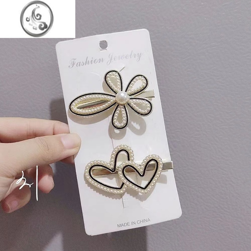 JiMi发夹边夹珍珠发卡刘海夹碎发夹子侧夹简约百搭少女气质蝴蝶结头饰 组合3#珍珠发夹2件套