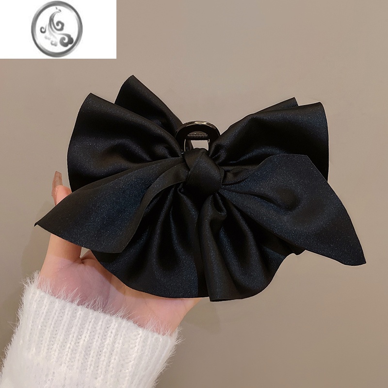 JiMi在逃公主头饰~缎面大蝴蝶结发抓鲨鱼夹后脑勺盘发韩国抓夹ins夹子 黑色大蝴蝶结-抓夹