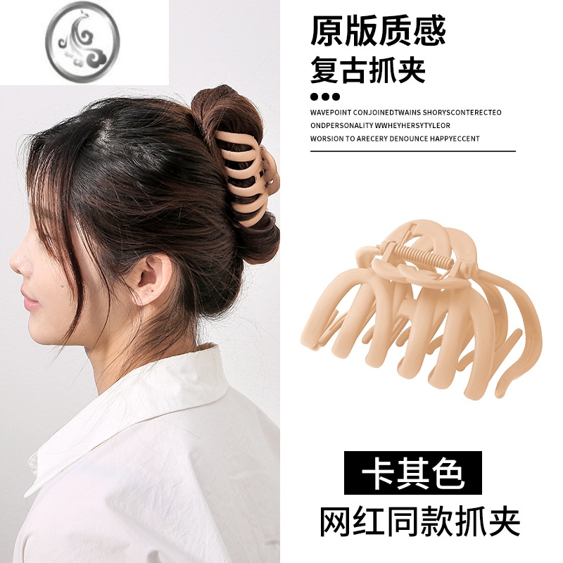 JiMi简洁蝴蝶结抓夹女夏季夹子头饰后脑勺可爱发夹时尚大号鲨鱼夹边夹 复古抓夹卡其色