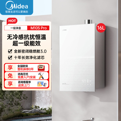 美的(Midea)[一级能效无冷凝M10S Max]18升燃气热水器天然气[增压无冷感7A恒温净音下置风机]白色