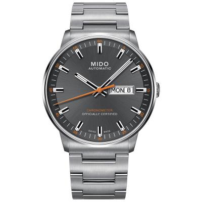 Mido男士自动机械腕表灰色表盘不锈钢手链时尚简约设计