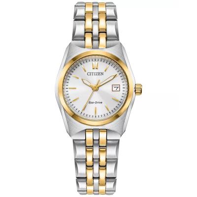 Citizen西铁城女款时尚两色不锈钢手链腕表mm永不换电池防水米