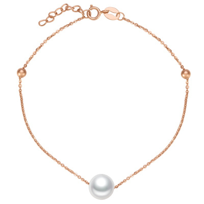 金一国囍18K金淡水珍珠正圆无暇莹巧女士珍珠手链 (定价)CID001