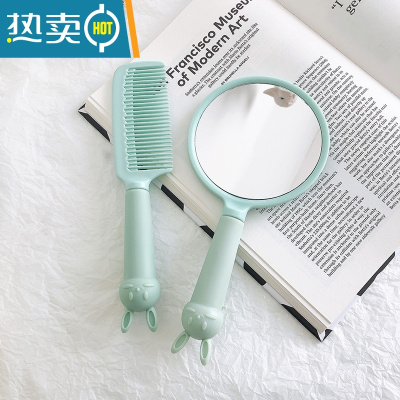 敬平随身便携镜梳套装手柄梳妆镜随身化妆镜网红女宿舍小镜子小梳子 卡通镜梳套装[2套 颜色随机]便携式用镜