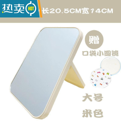 敬平ins镜子折叠化妆镜桌面台式镜方形镜家用宿舍高清便携梳妆镜大号便携式用镜 大号米色[豪华梳妆五件套礼包]