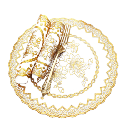 羚翎 LL-D17 直径16CM PVC 杯垫 白底金花