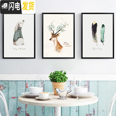 三维工匠十字绣2019新款绣麋鹿兔子现代简约中国风客厅卧室水墨线绣三联画 [中格3股]羽毛30x40cm丝线白底不绣
