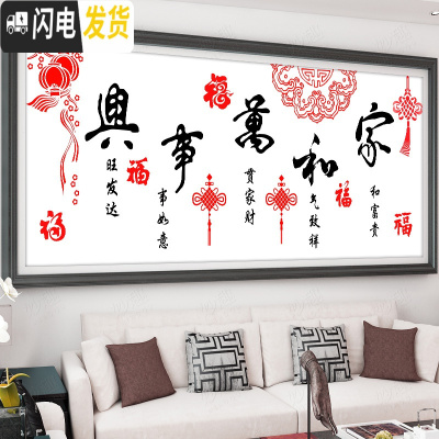 三维工匠十字绣2019新款绣和字字画简约现代客厅家和万事兴 [丝线款]180*70cm/送工具-中格3股-无图纸-白底不