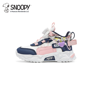 史努比童鞋男童百搭旋钮扣运动鞋秋季新款女童轻便软底耐磨休闲鞋