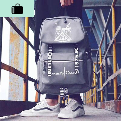 男士背包双肩包韩版时尚潮流旅行包初中高中大学生书包帆布电脑包NEW LAK b148灰+送挂饰常规款45*35*15cm