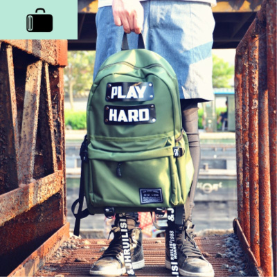 男士背包双肩包韩版时尚潮流旅行包初中高中大学生书包帆布电脑包NEW LAKE b87绿+送挂饰常规款45*35*15cm