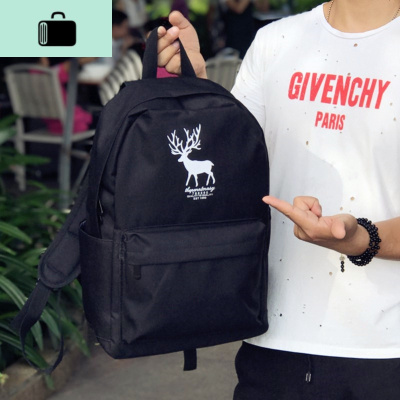 韩版帆布背包初中高中大学生书包男时尚潮流青少年双肩旅行电脑包NEW LAKE 小鹿黑色