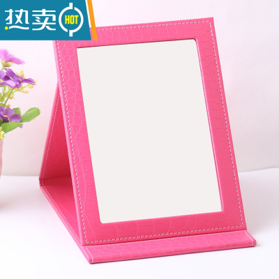 敬平韩国 精致PU皮革台式化妆镜 梳妆镜便携镜 随身折叠镜子 大号 玫红鳄中号便携式用镜