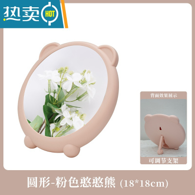 敬平可爱卡通ins风化妆镜女生家用便携小镜子台式桌面梳妆镜简约卧室 粉色憨憨熊便携式用镜