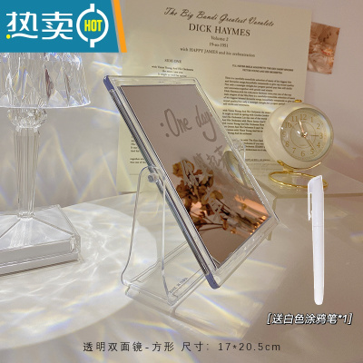敬平ins风亚克力镜子化妆镜学生宿舍折叠家用透明台式桌面大号梳妆台便携式用镜 透明方形 送白色涂鸦笔