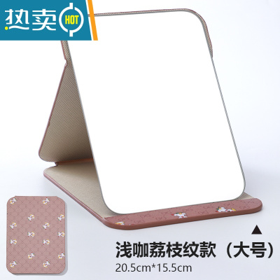 敬平化妆镜女台式桌面可立高清梳妆镜宿舍学生随身便携折叠镜子 大号淡米色款[厚款]便携式用镜