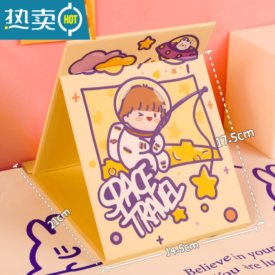 敬平ins风少女心小镜子大号台式化妆镜折叠可爱便携宿舍桌面可立学生 黄色太空人便携式用镜