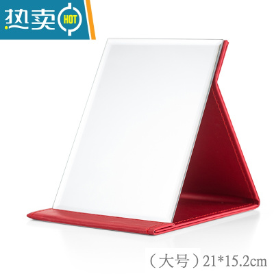 敬平镜子化妆镜折叠台式镜子便携随身高清学生宿舍女大小号桌面梳妆镜便携式用镜 大号[红色]