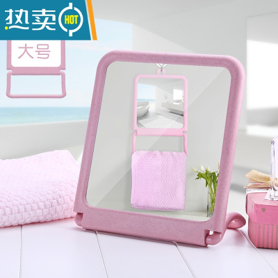 敬平网红梳妆小镜子桌面折叠可立挂墙便携家用台式壁挂宿舍学生化妆镜便携式用镜 大号-北欧粉