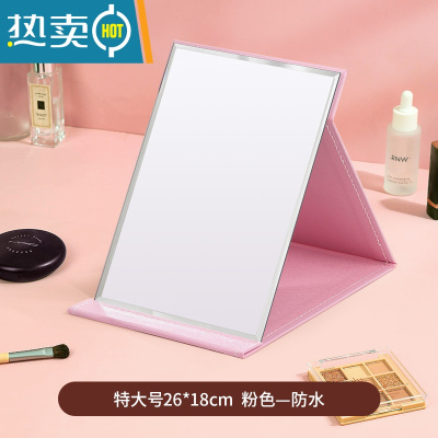 敬平镜子化妆镜折叠台式便携随身高清学生宿舍公主女大小号桌面梳妆镜 特大号[粉色]便携式用镜