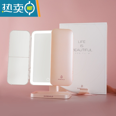 敬平led化妆镜带灯台式补光小镜子ins风网红女宿舍桌面便携小型梳妆镜 [粉色]1200ma支架+梳子(+收便携式用镜