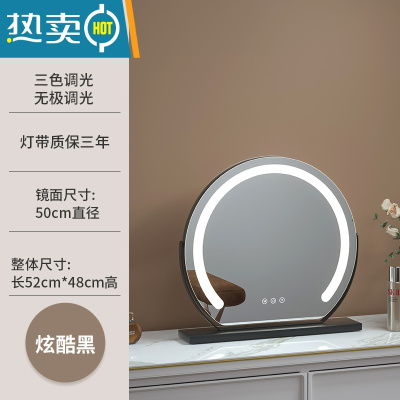 敬平梳妆台化妆镜台式led灯桌面旋转智能带补光美妆镜子卧室ins风网红便携式用镜 旋转款半圆灯带50直径(黑色充电款)