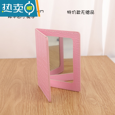 敬平高清折叠镜子化妆镜台式便携随身学生宿舍公主大号PU皮桌面梳妆镜 粉鳄小双面镜便携式用镜
