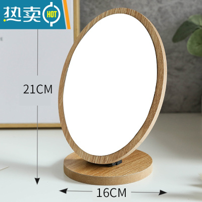 敬平大号木质台式化妆镜女梳妆镜学生桌面镜子宿舍少女便携折叠可立小 原木色浅色[椭圆](前收藏加购送梳子、随身镜便携式用镜