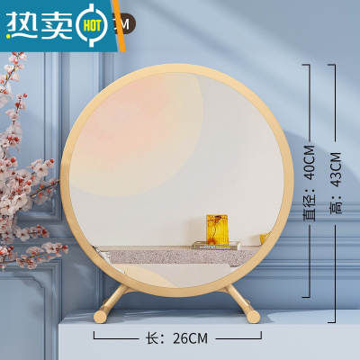 敬平大号台式桌面化妆镜led带灯宿舍学生ins风梳妆台卧室网红补光圆镜便携式用镜 黄色-简约款40CM[可微调角度/高清