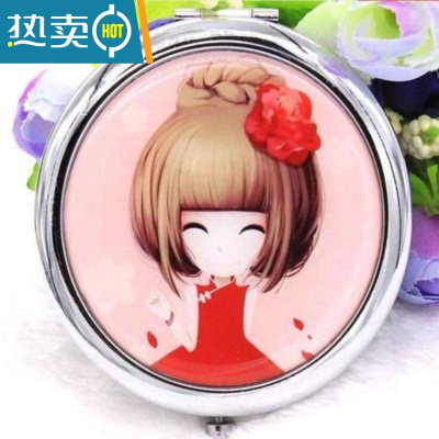 敬平可爱金属化妆镜随身便携美容小镜子折叠创意迷你山水画双面圆镜便携式用镜 花花姑娘#