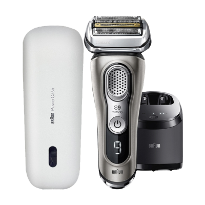 博朗BRAUN四刀头往复式电动剃须刀9385cc+pc 银灰色45分钟长效续航带旅行锁设计