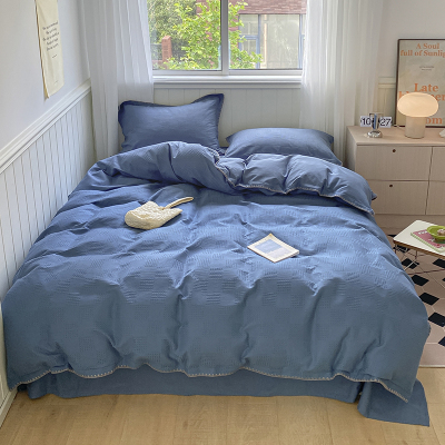 ins高级感华夫格水洗棉四件套亲肤纯棉三角针被套