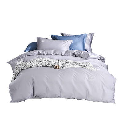吉庭 60支纯色贡缎长绒棉绣花四件套 纯棉全棉床上用品