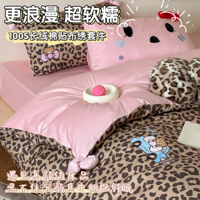 100支豹纹四件套床品新款纯棉卡通印花被套床单人宿舍三件套