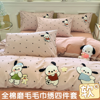 2025新款100%全棉毛巾绣四件套女孩纯棉卡通被套三件套床上用品