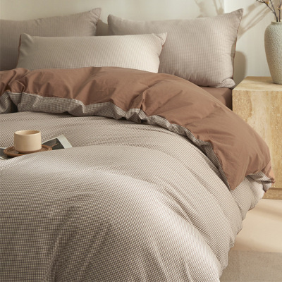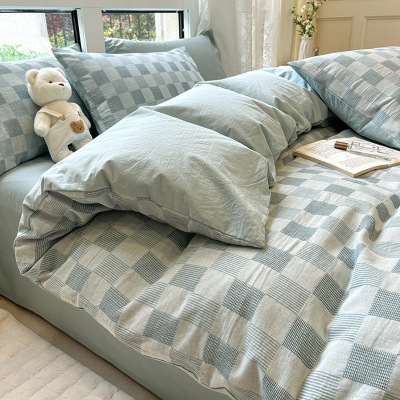 格子无印华夫格床上四件套全棉水洗棉床单被套纯棉被罩三件套床品