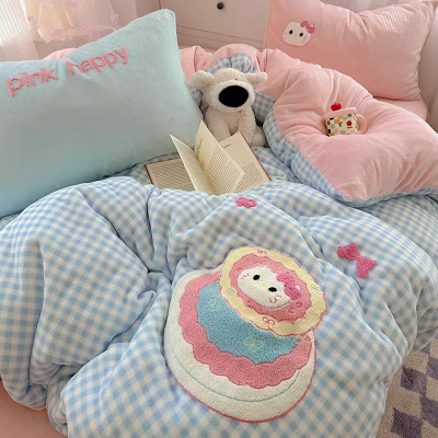 高品质少女心卡通羊毛绒牛奶绒四件套软糯贴身儿童房秋冬三件套