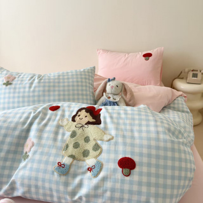 秋冬A类卡通小清新全棉磨毛四件套毛巾绣加厚保暖床品套件三件套