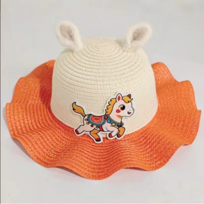 2026夏季新款福马儿童草帽女童粉色立体耳朵防晒帽卡通草编遮阳帽