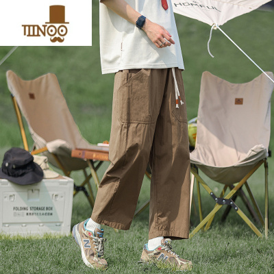 YANXU裤子男夏季薄款日系潮流户外直筒休闲九分裤复古宽松运动裤子