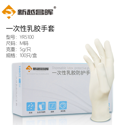 新越昌晖 一次性乳胶手套加厚耐用厨房餐饮家务清洁劳保工业乳胶手套米白色 100只/盒M码