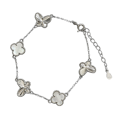 北京黄金 S925 银车花蝴蝶四叶草手链 轻奢银饰生日送礼礼物