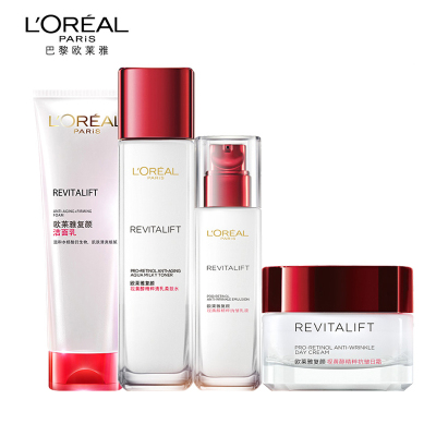 欧莱雅复颜视黄醇抗皱紧致面部护理套组洁面柔肤水乳液面霜四件护肤套装